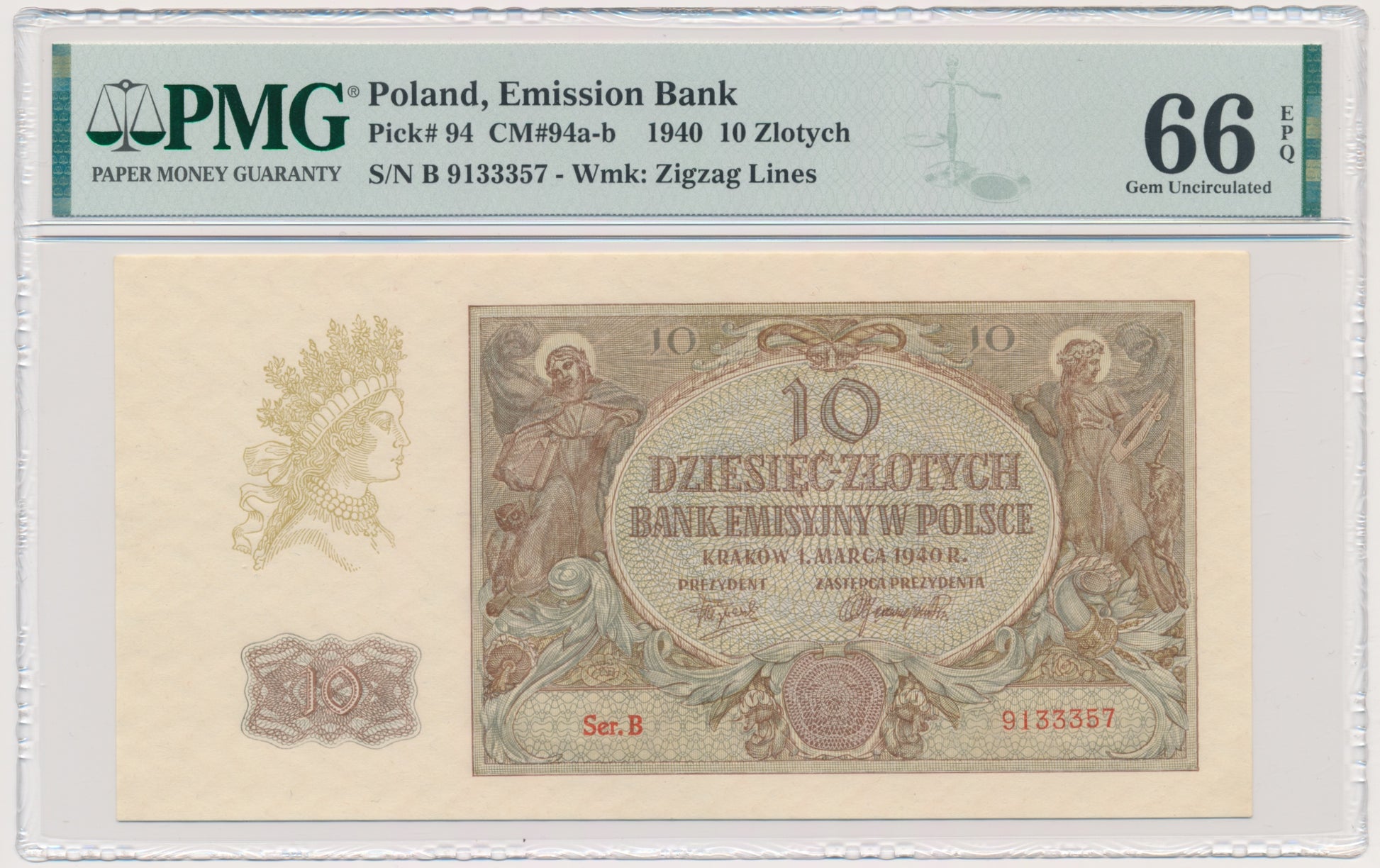 Banknot opatrzony certyfikatem PMG z oceną PMG 66 EPQ.