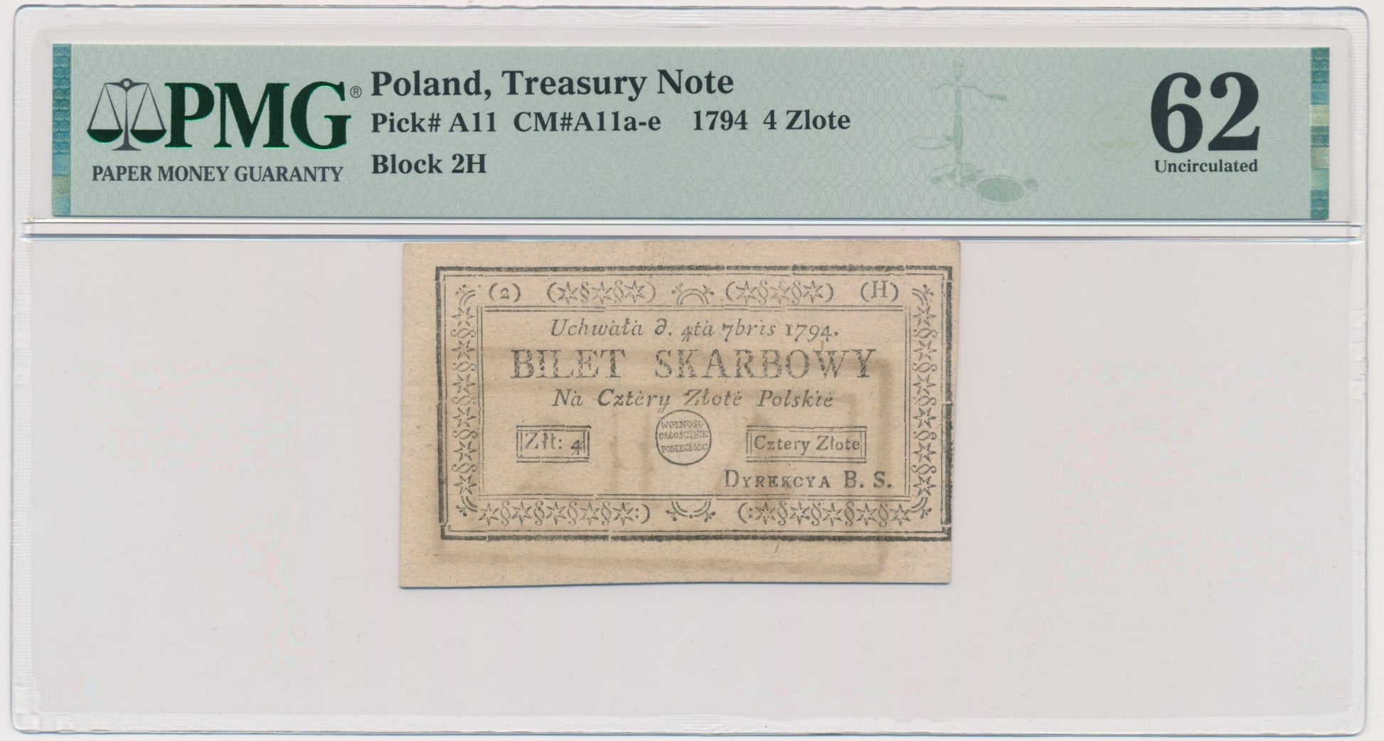 Banknot opatrzony certyfikatem PMG z oceną PMG 62.