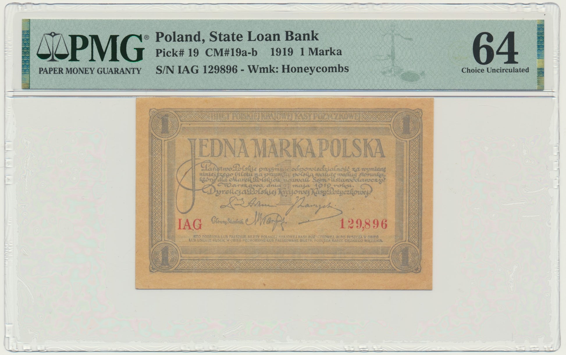Banknot opatrzony certyfikatem PMG z oceną PMG 64.