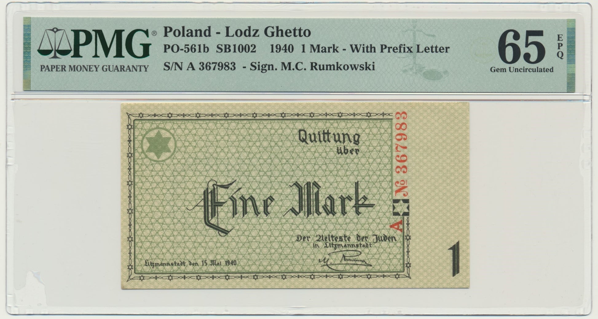 Banknot 1 marka 1940 – A – 6 cyfr – PMG 65 EPQ