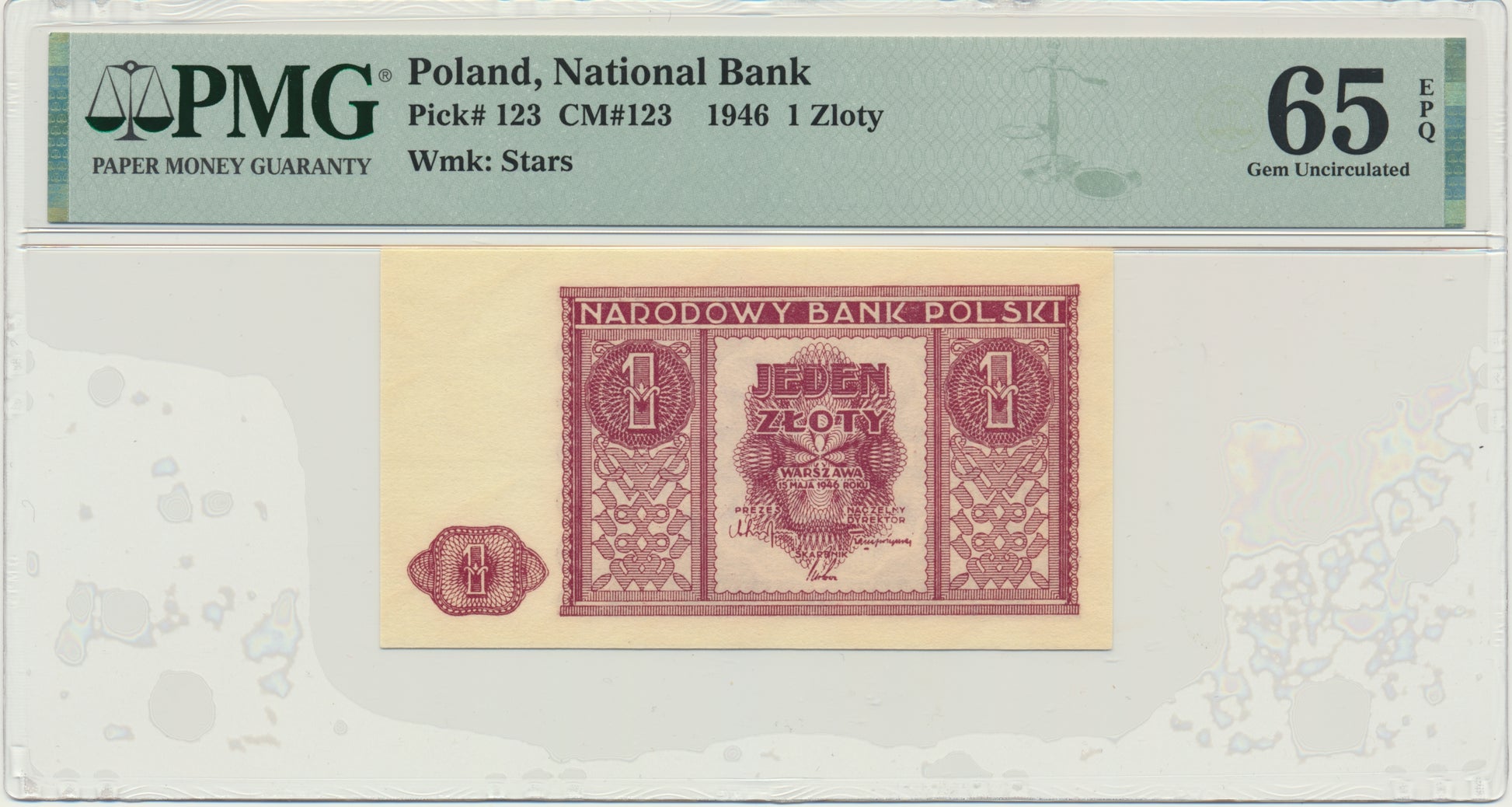Banknot 1 złoty 1946 – PMG 65 EPQ