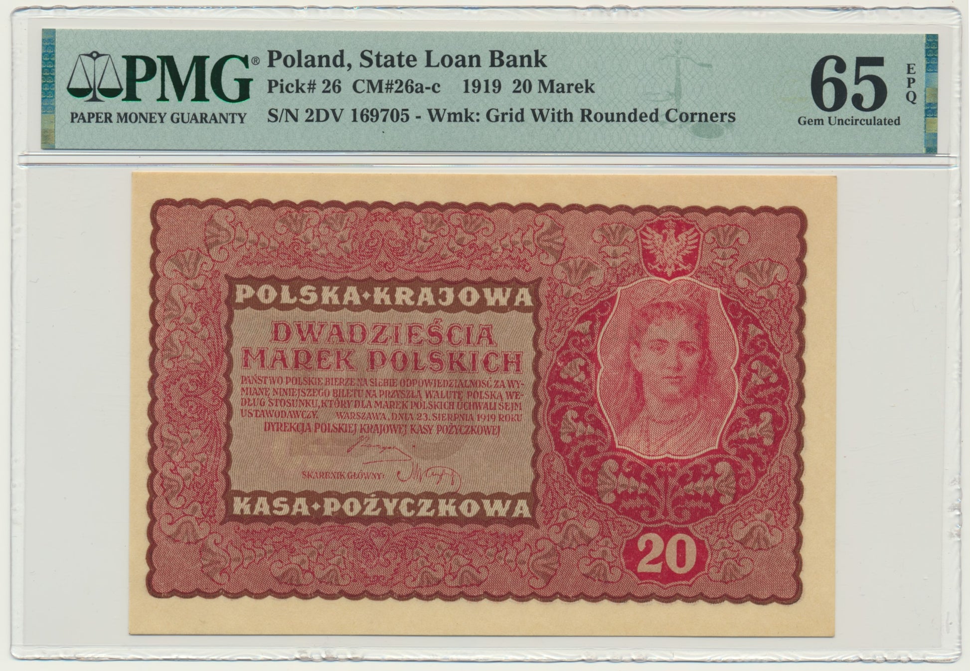 Banknot 20 marek 1919 – II Serja DV – PMG 65 EPQ
