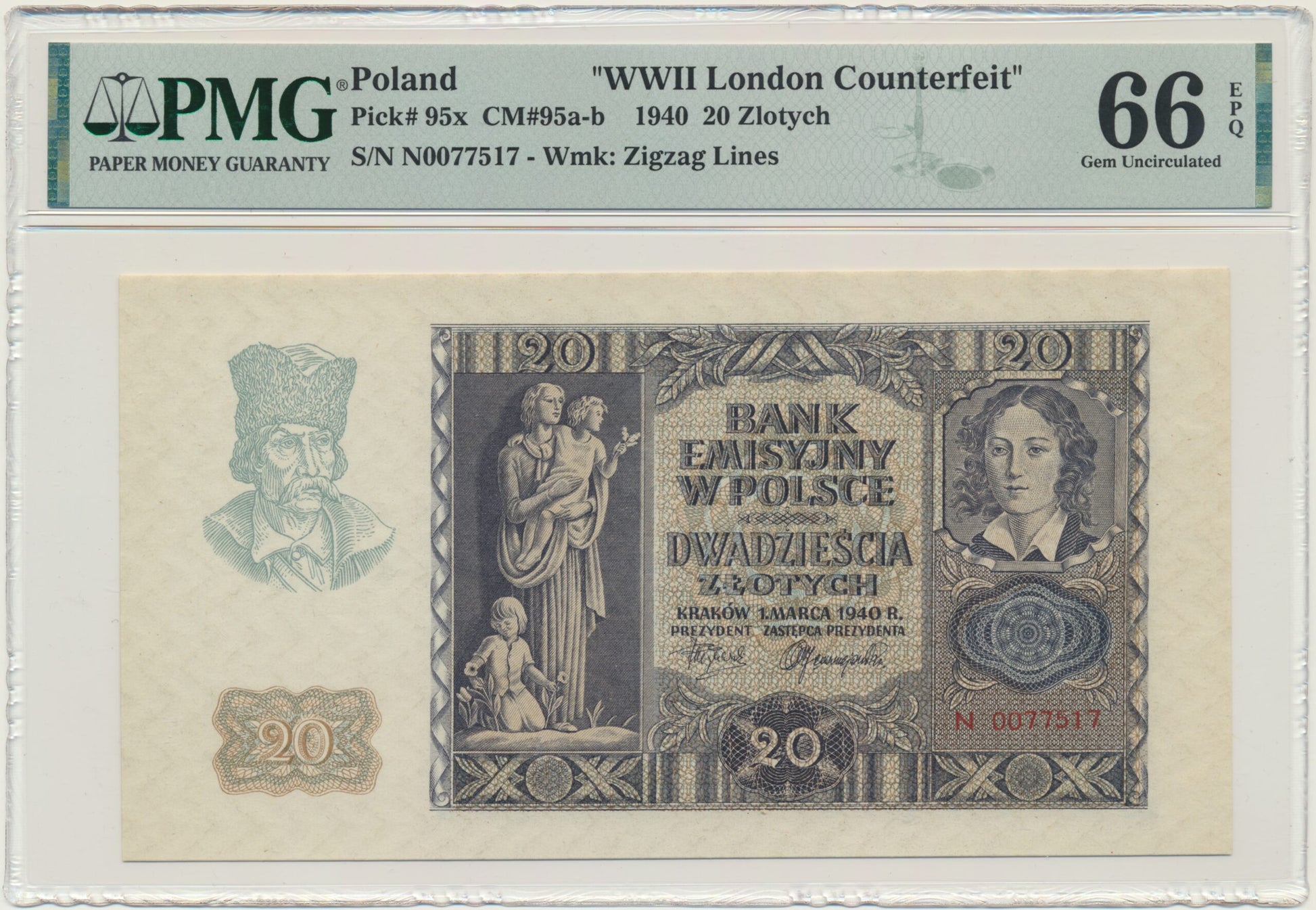 Banknot 20 złotych 1940 – N – PMG 66 EPQ