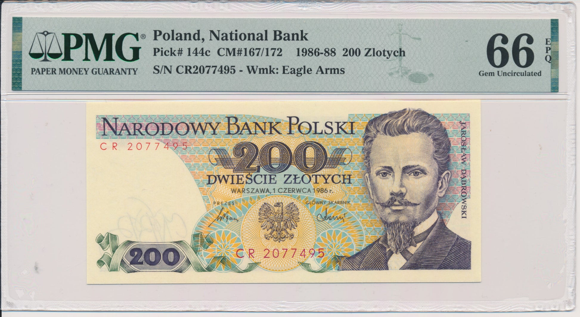 Banknot 200 złotych 1986 – CR – PMG 66 EPQ