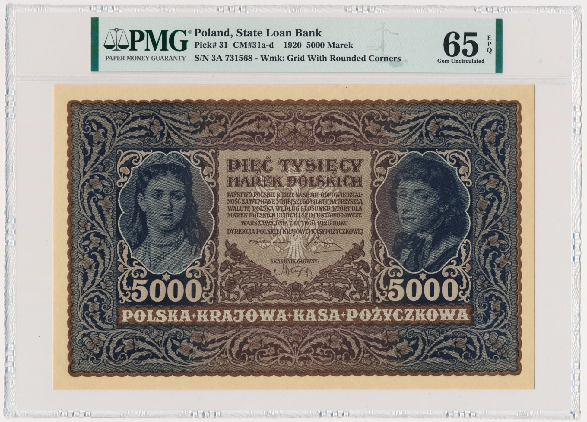 Banknot 5.000 marek 1919 – III Serja A – PMG 65 EPQ