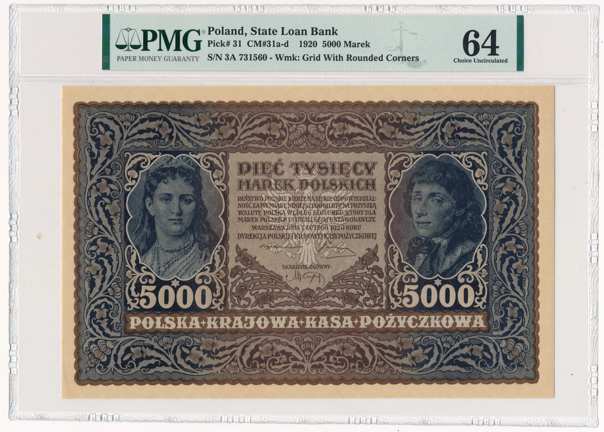 Banknot 5.000 marek 1920 – III Serja A – PMG 64 EPQ