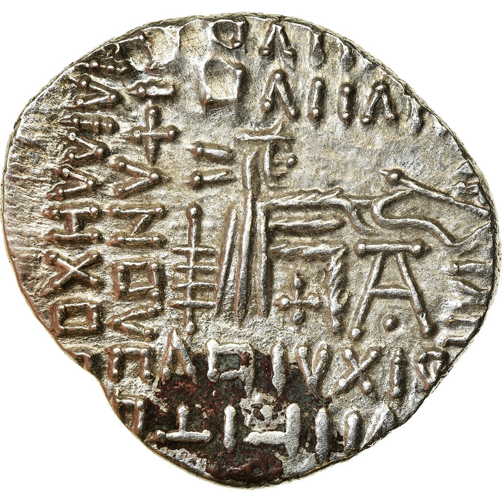 Popiersie Wologazów z diademem po lewej stronie Łucznik (Arsakes I) siedzący po prawej stronie tronu, trzymający łuk 3,82 gr